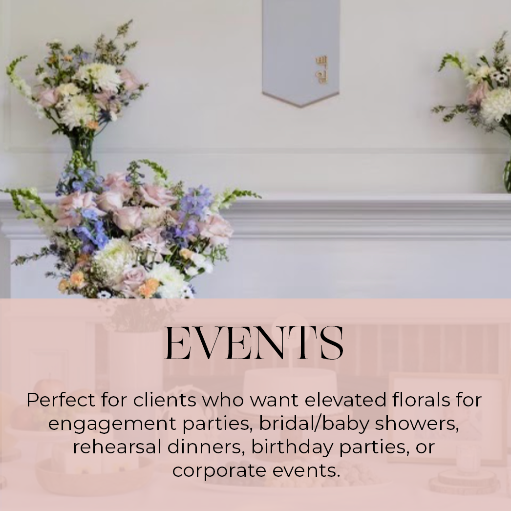 Custom packages are built to include all flowers desired, from bouquets & boutonnieres to large scale installs & full table styling.