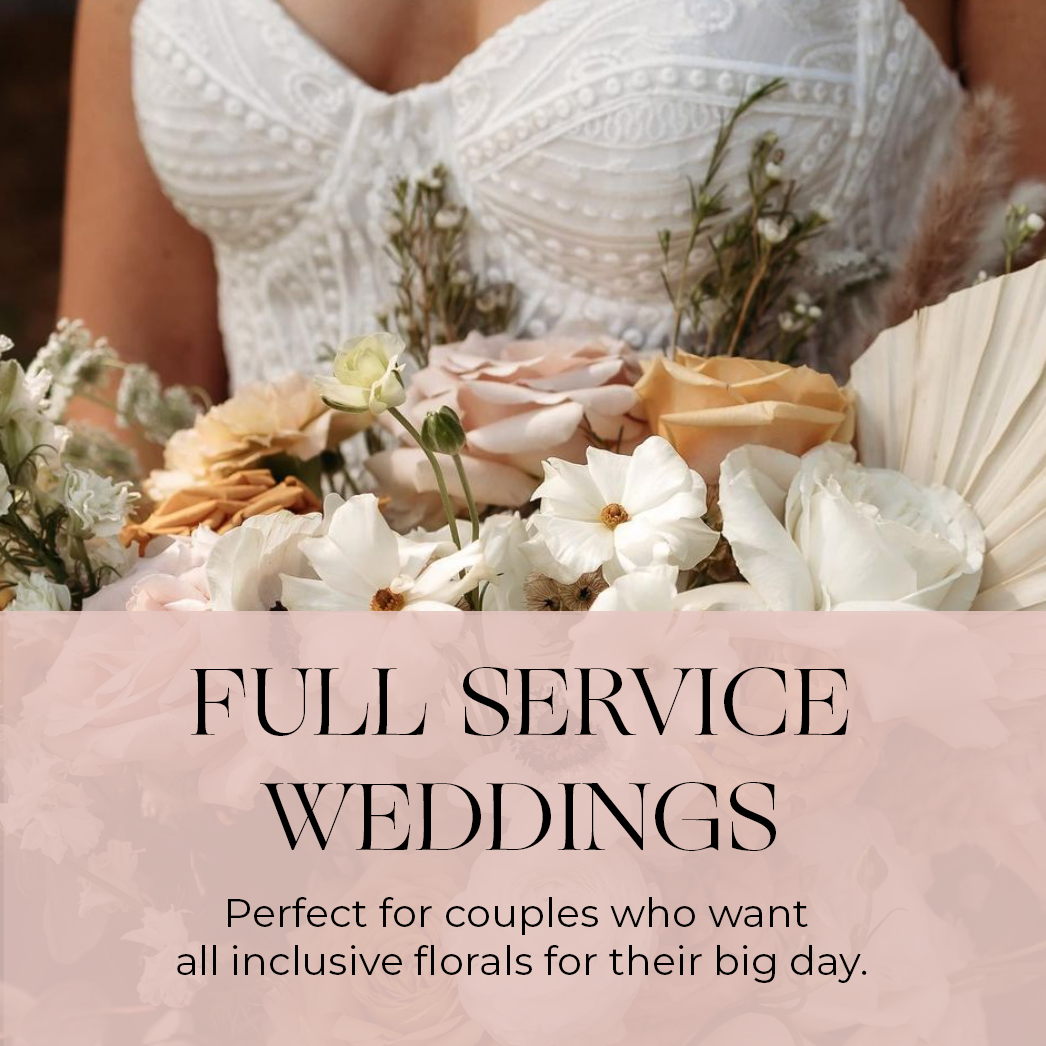 Have questions about the full service wedding offerings? Scroll down to read our FAQs on what to expect below.